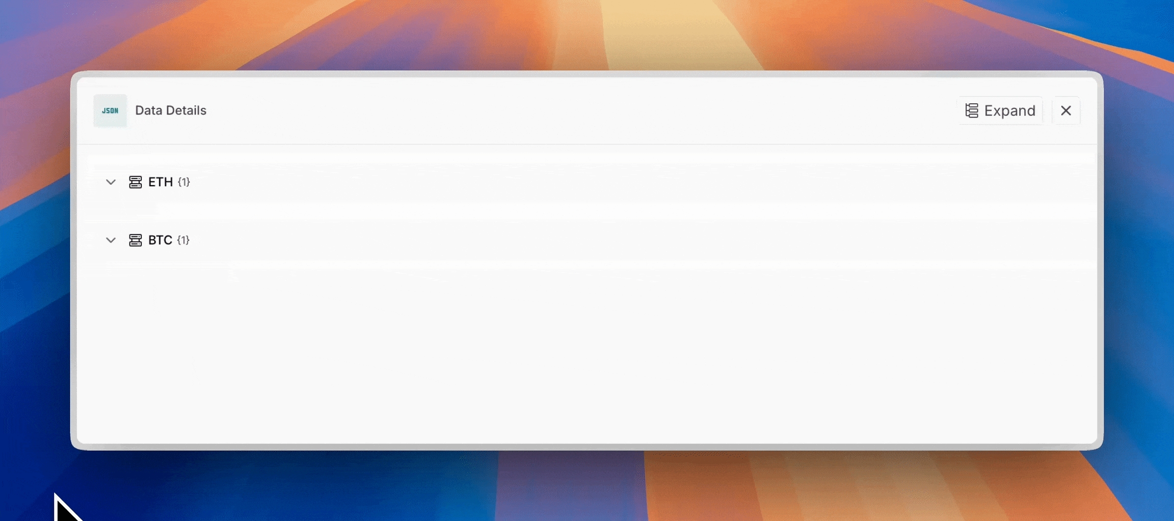 The JSON Data Preview is divided into two modals: Data Structure and Data Details. Let’s break down how these work using an example of reading price data for ETH and BTC.